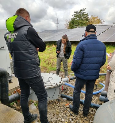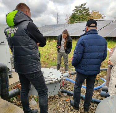 Стрийський полігон — це не просто місце для захоронення, а інженерна споруда. Ми відвідали як рекультивовані, так і діючі ділянки. Ключовий момент: на полігонах налагоджено утилізацію біогазу. Метан, що утворюється при розкладанні органіки, є потужним парниковим газом. Компанія партнер GreenЕra не дає цьому метану потрапляти в атмосферу, а збирає його та перетворює на електричну енергію, яка потрапляє до споживажів у Стрийській громаді по власним мережам. Це прямий та ефективний внесок у досягнення NET ZERO цілей. Додатково, на території полігону встановлені сонячні електростанції (СЕС), які генерують чисту енергію, підтверджуючи прагнення до енергонезалежності.